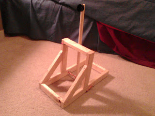 I made another catapult. The difference is this one is bigger and flings father. Yeah, pretty cool.